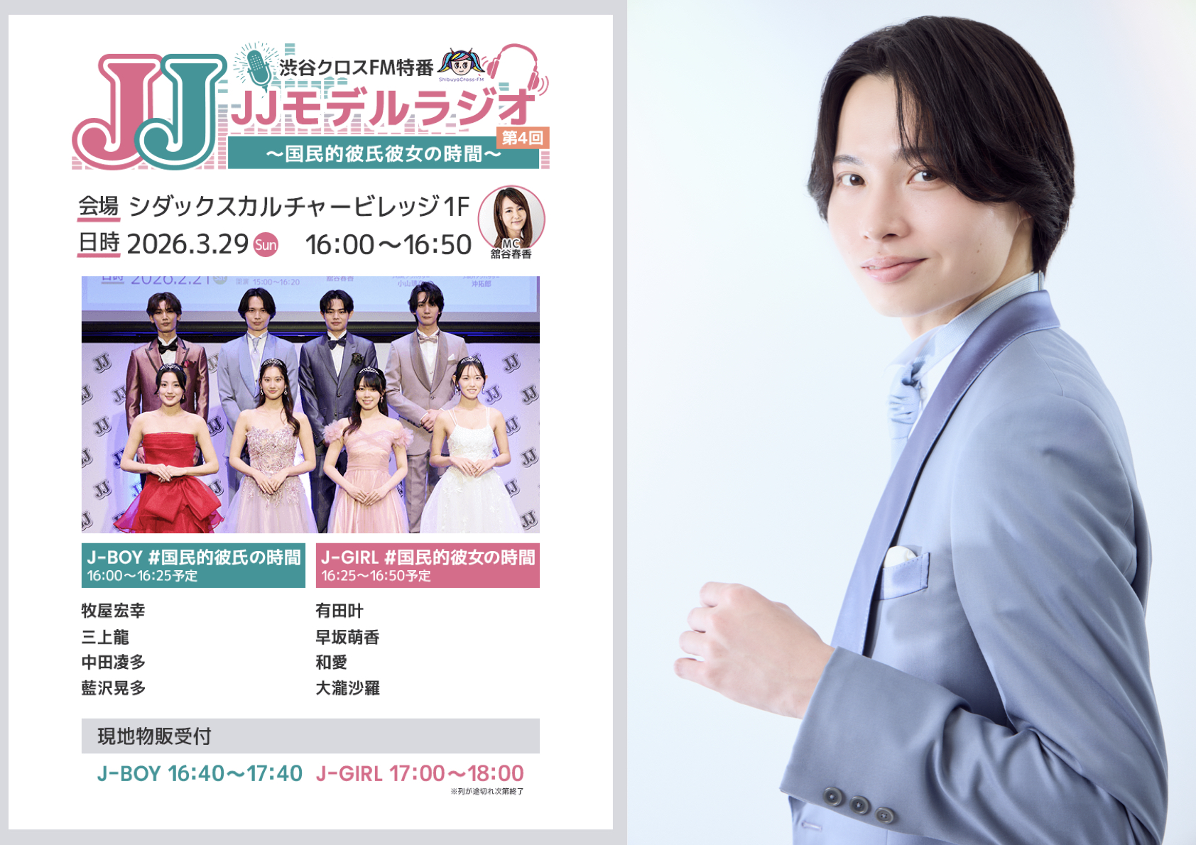 日時:2026年3月29日(日)会場:シダックスカルチャービレッジ 1階Shibuya Cross-FM/渋谷クロスFM東京都渋谷区神南1-12-10※無料でご観覧いただけます。WEB視聴はコチラマシェバラ公式サイト会場での物販チェキ1枚 当日販売 2,500円(税込)<J-BOY>受付時間:16:40〜17:40